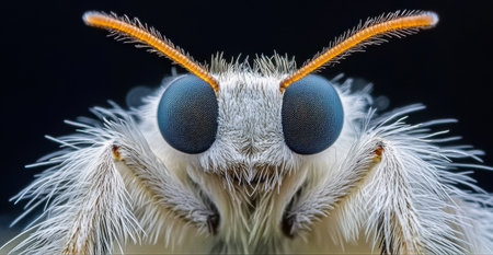 Magnified Insect Macro Photography Stunning White Fuzzy Moth Detailed Closeup Blue Eyes Nature