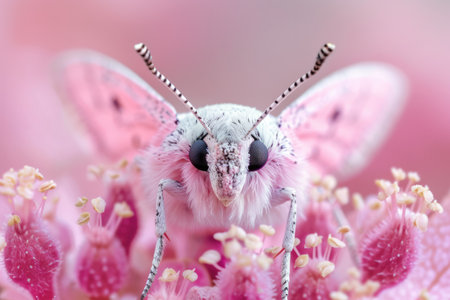 Generative AI, Close up portrait of pink insect, macro photography, super detail and fantasy.