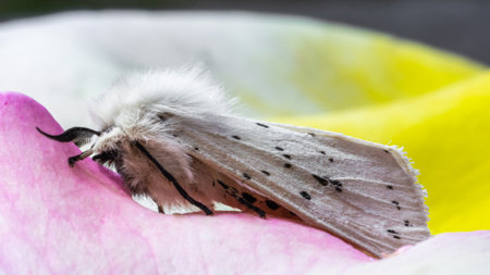 Close-up image of a White Ermine Moth (Spilosoma lubricipeda)