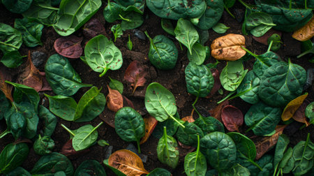 Vintage looking Green spinach leaves edible flowering plant vegetarian food