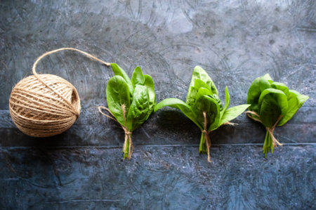 Bunches of green spinach, green vegetables, rustic style, healthy lifestyle, proper nutrition.