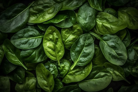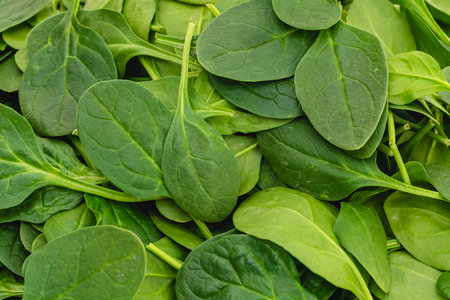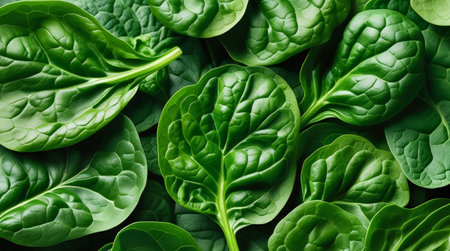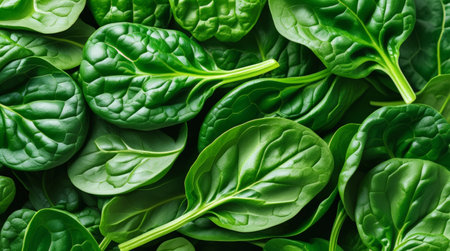 Close-up full frame view of vibrant green spinach leaves. Ideal background for healthy eating, cooking, and natural food concepts
