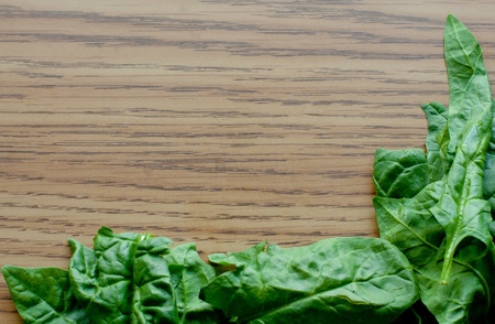 Green spinach border on bottom right on wood