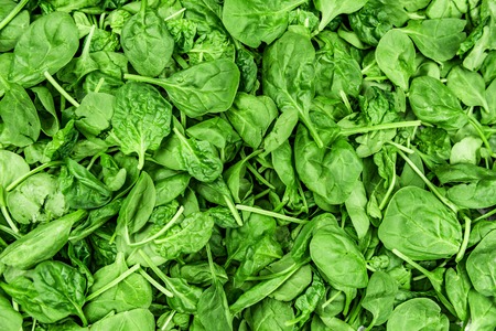 Fresh green baby Spinach leaves, diet and healthy food concept, weight loss, spinach background top view
