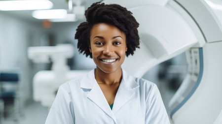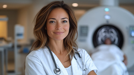 Skilled radiologic technologist in imaging facility instilling confidence in patients