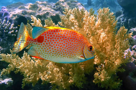 Yellowspot rabbitfish Siganus guttatus, sea fish, close up
