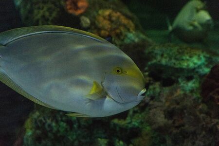Yellowfin surgeonfish or Cuviers surgeonfish. Acanthurus xanthopterus fish swimming in aquarium