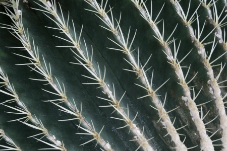 The lines of thorns of a golden barrel cactus create an abstract pattern