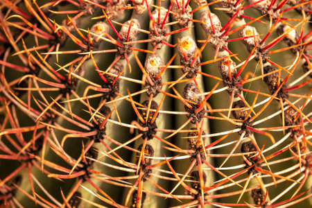 Cactus Family, close-up barrel cactus. thorn cactus texture background, close up.