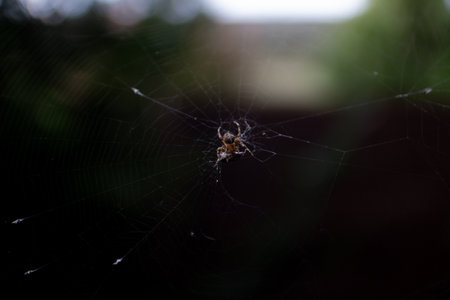 Intricate spider web captures natural predator and prey interaction under dark backdrop