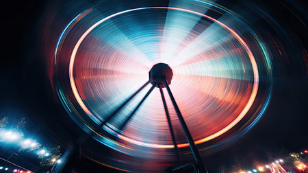 Captivating circular light trails of a ferris wheel at night with vibrant colors