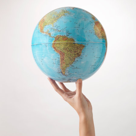Closeup photo of a desktop globe with warm lighting, symbolizing global connectivity and geography in an educational context