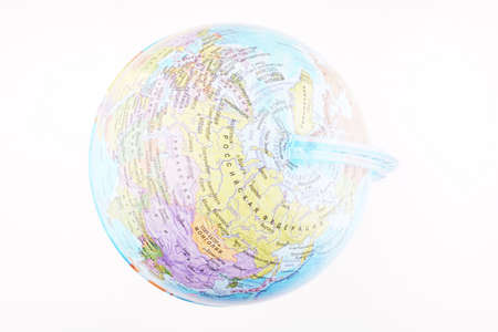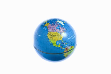 Globe with map of the world on a white background. Close-up.
