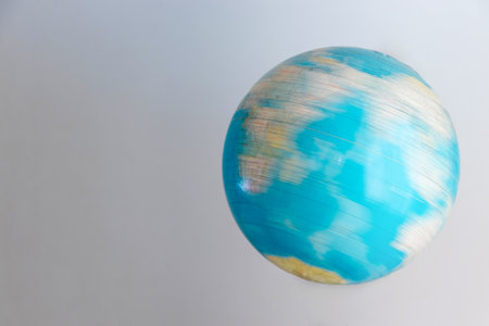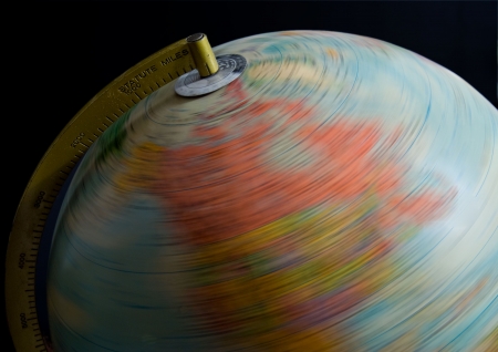 An educational globe spinning on its axis.