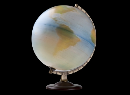 A closeup shot of a spinning globe isolated on a black background