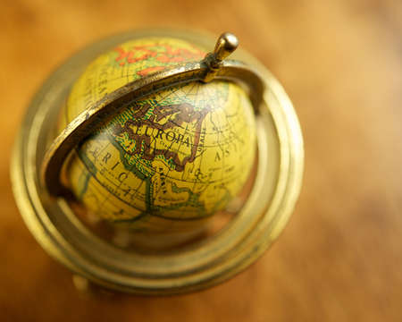 Close up of an old vintage globe, blurry background