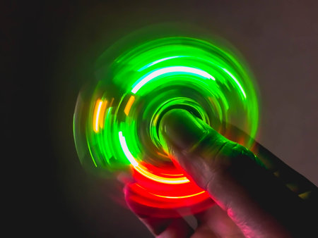 Spinning top creates mesmerizing patterns in vibrant, blurred motion during long exposure shot