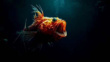 Deep Sea Fish in the solid black background