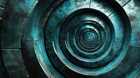 A stunning abstract spiral design featuring intricate metal textures in turquoise and gray tones. This artwork creates a mesmerizing depth and dimension, perfect for artistic expressions.