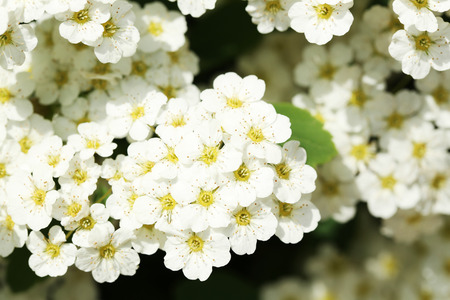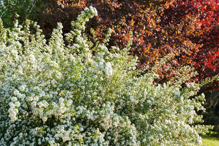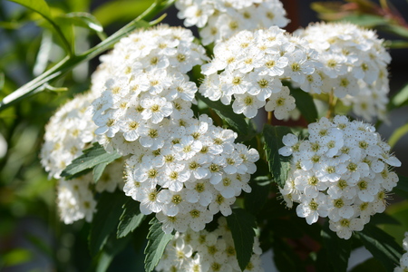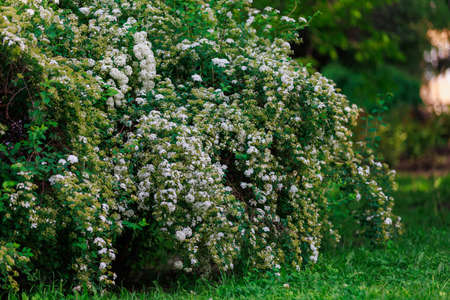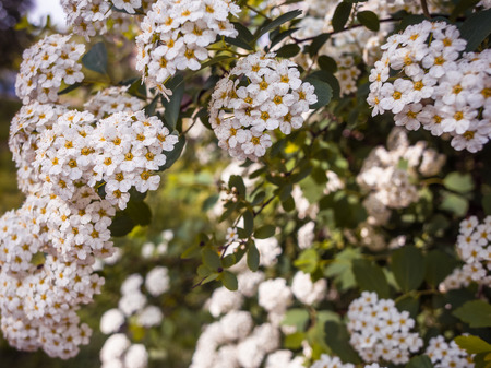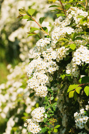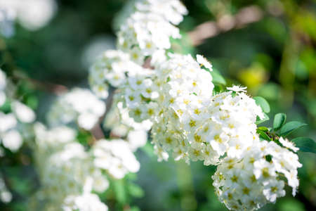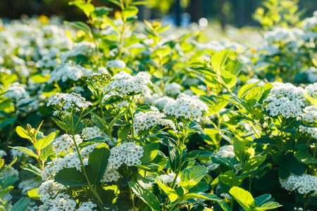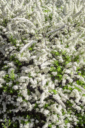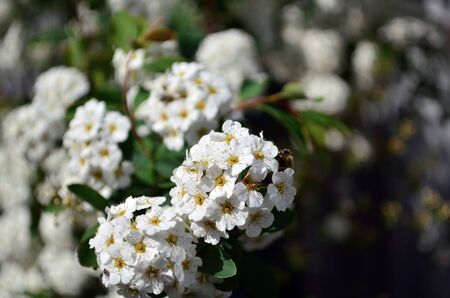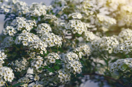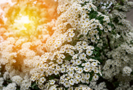 White flowers bush Spiraea in the sunlight