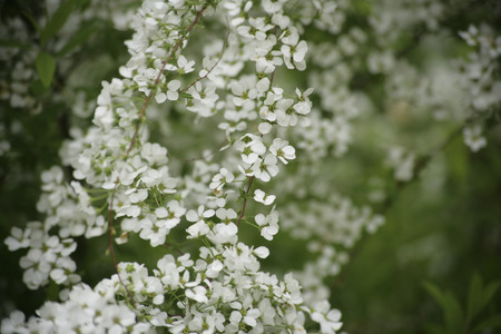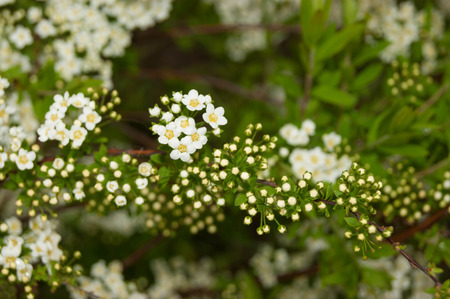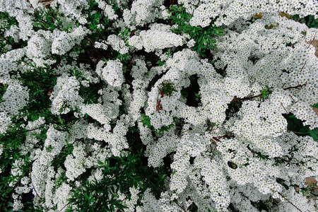 White flowering shrub Spirea aguta (Brides wreath)