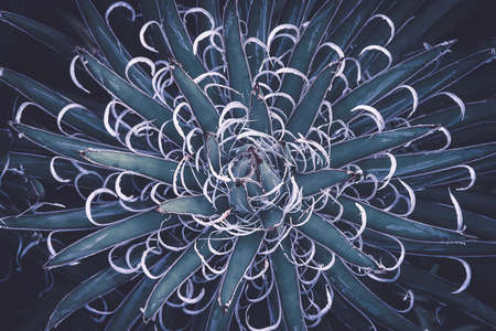 Exotic Agave Plant In Dark Blue Tone Color Natural Abstract Pattern Background