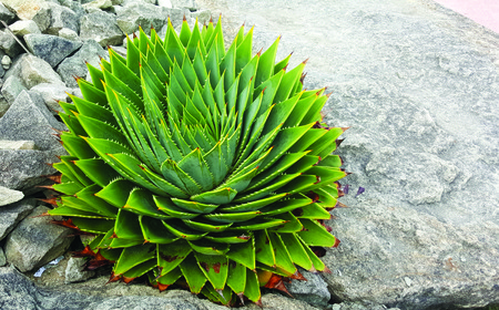 The beauty of nature shown by the natural swirl of an aloe vera plant