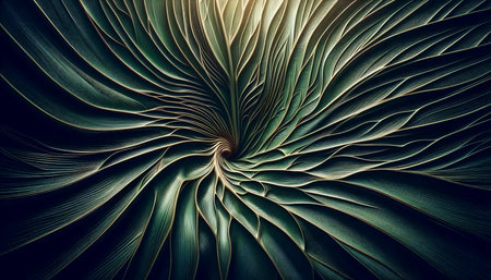 A captivating spiral design formed by green leaves, showcasing nature's beauty and vibrant colors. This abstract photo evokes tranquility and harmony.