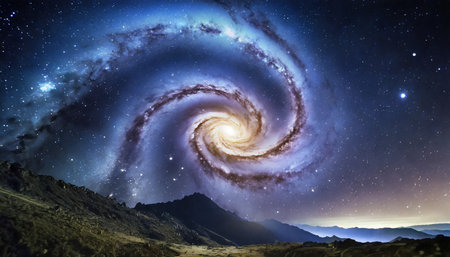 Breathtaking spiral galaxy rotates majestically in the vast expanse of deep space, its bright core illuminating the surrounding cosmic dust and stars, creating a mesmerizing celestial spectacle