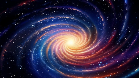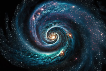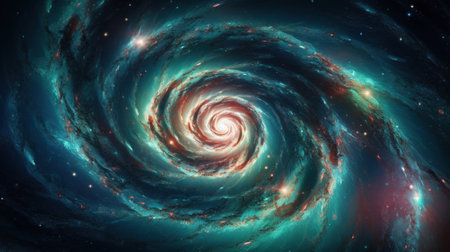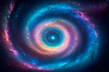A spiral galaxy in space with bright colors, AI