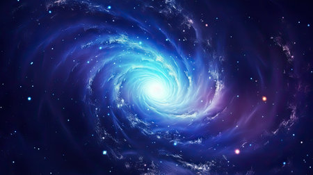 Blue spiral galaxy with stars and nebula, computer generated abstract background