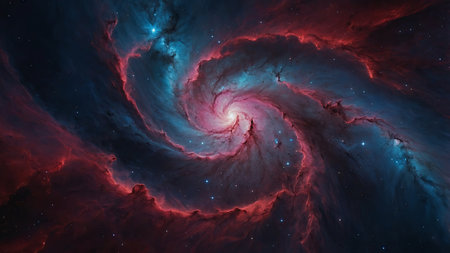 AI Generated. A vibrant cosmic landscape with swirling red and blue hues, depicting the vast beauty of a nebula