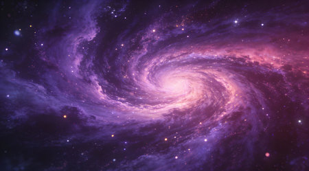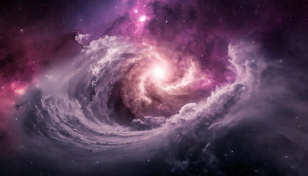 A creative digital illustration depicting Galaxy nebula swirl background in purple, pink, cosmic dust, starry pinpoint lights, infinite space mood, swirling vortex depth, high quality creative art. This AI-generated artwork features unique visual elements suitable for various commercial and editorial applications. AI-generated illustration.