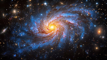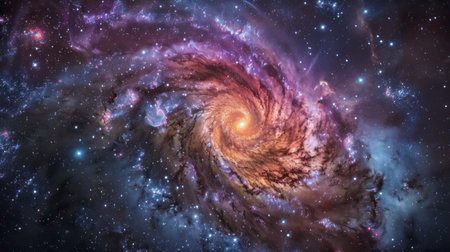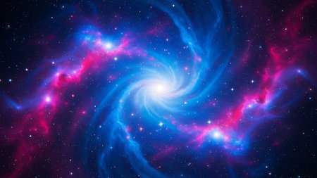 Spiral galaxy with stars and nebula in deep space.