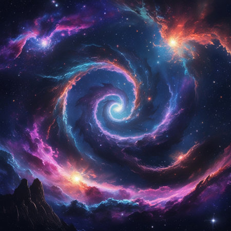 AI generative fantasy illustration of a spiral nebula in space