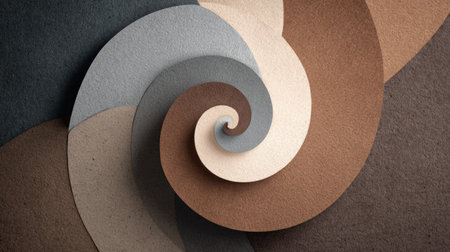 An intriguing abstract image featuring a spiral of curved paper layers. The warm tones create depth and contrast, highlighting texture and artistic design.
