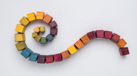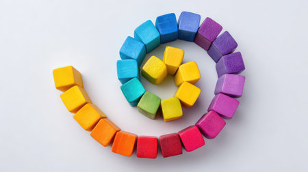 Letter blocks A to Z arranged in spiral shape on white background, abstract composition with room for overlay