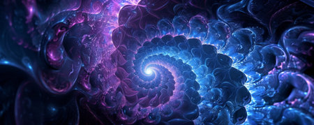 Fractal spiral in purple and blue tones, abstract digital art. Futuristic and cosmic concept