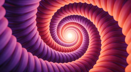 A creative digital illustration depicting Hypnotic gradient spirals in lavender to coral pulling viewer in, spiral vortex composition, central pulsing light source, optical illusion gradient style, captivating hypnotic mood, stock excellence.. This AI-generated artwork features unique visual elements suitable for various commercial and editorial applications. AI-generated illustration.