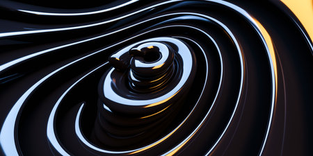 Abstract background showing a mesmerizing concentric op art vortex with deep perspective. Yellow and black spiral tunnel creating optical illusion