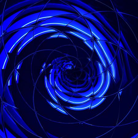 art from electric Neon and ultraviolet blue abstract spiral patterns shapes and designs on black background