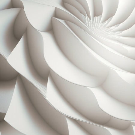 3D rendered abstract image featuring a swirling spiral of white layers creating a visually captivating texture.