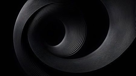 Dynamic abstract spiral featuring alternating black and white stripes creating a hypnotic tunnel effect with depth and motion.