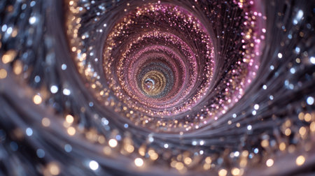 An abstract composition features a swirling spiral composed of countless colored particles. The artwork displays a variety of colors, creating a vibrant and dynamic visual experience. The design suggests a sense of depth and movement, potentially suitable for digital art, visual effects, and graphic design applications. The image can be used for a wide range of creative and commercial projects.