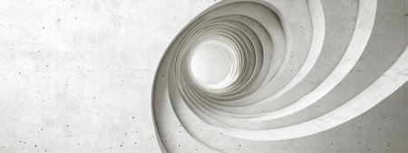 Immerse yourself in this captivating abstract image showcasing a spiral staircase with a smooth grey concrete finish and captivating light gradient, creating a sense of depth.