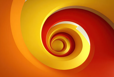 Swirling concentric circles of orange, yellow and red creating a vibrant, tunnel-like vortex