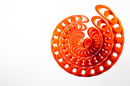 Illustration of 3d red metal chains in the form of a spiral. Set of chains on a white background. Geometric pattern. Science and technology background