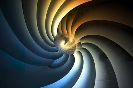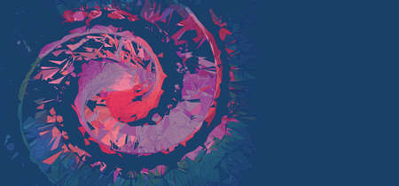 Abstract colorful bright red polygonal spiral composition on dark blue bg art with space for text copy