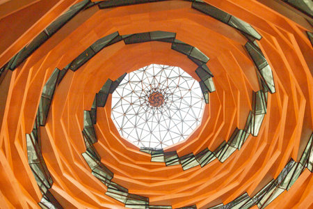 Helsinki, Finland - July 1, 2020: The spiral staircase of Oodi library