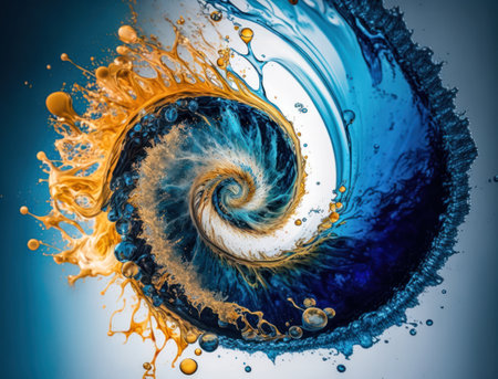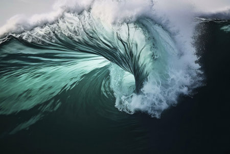 This striking abstract image captures the dynamic motion of an ocean wave, featuring vibrant colors and intricate textures, perfect for art and design projects.